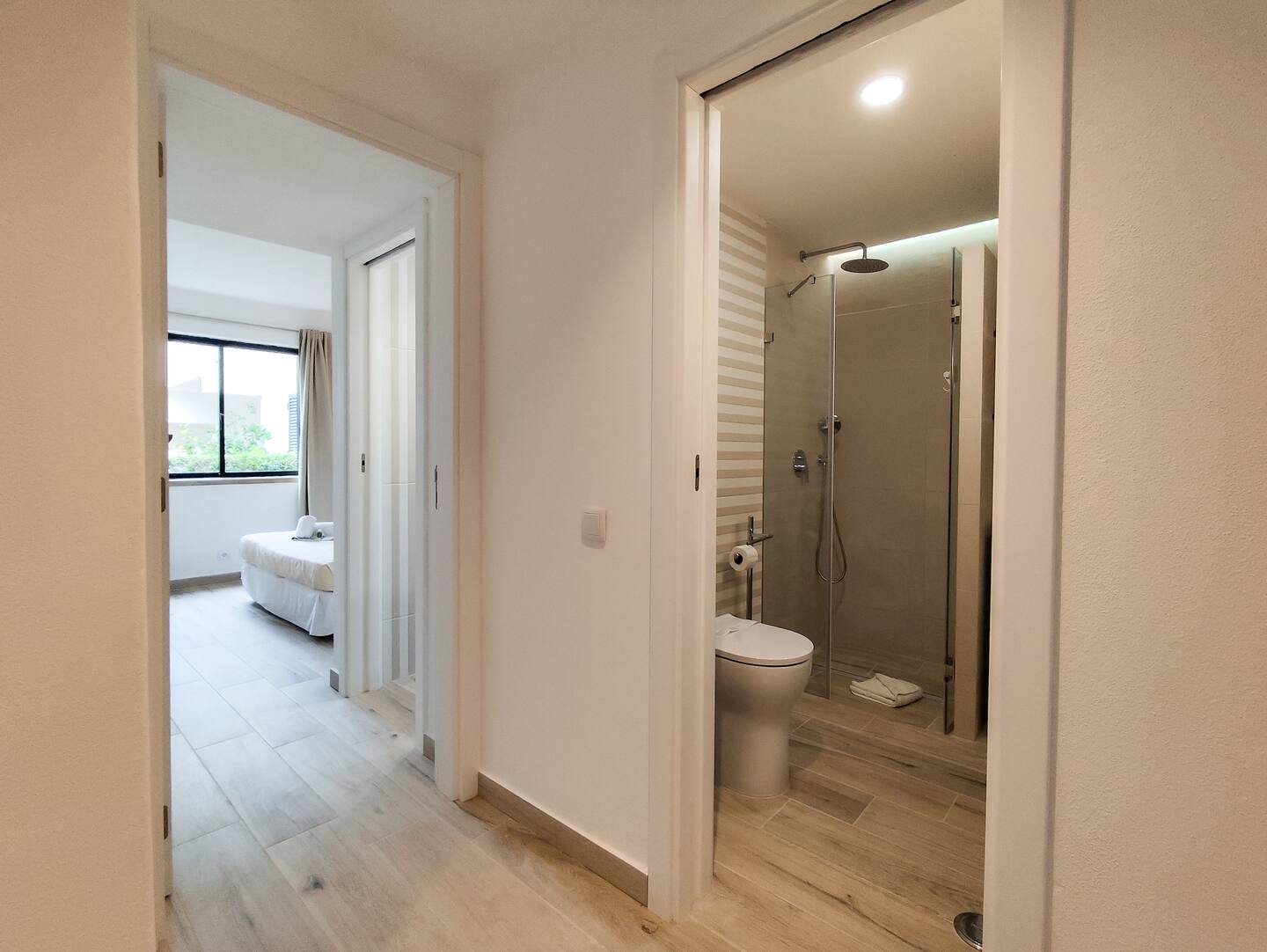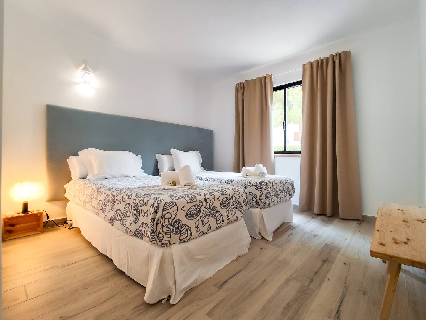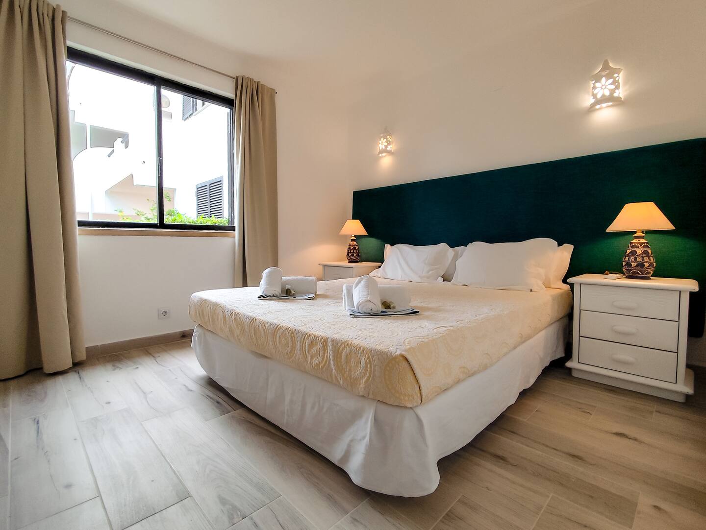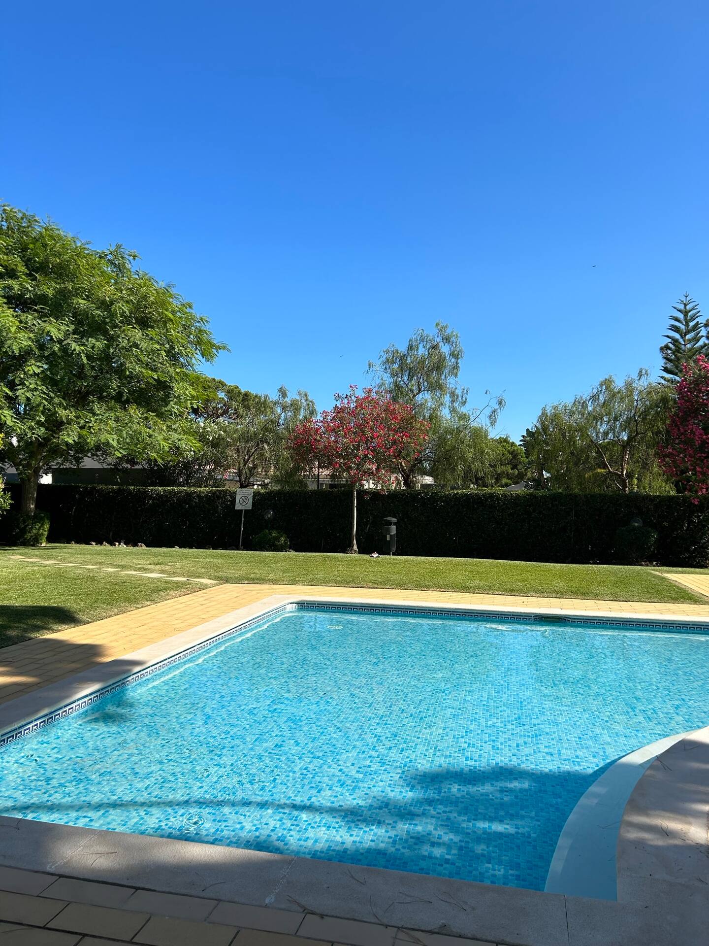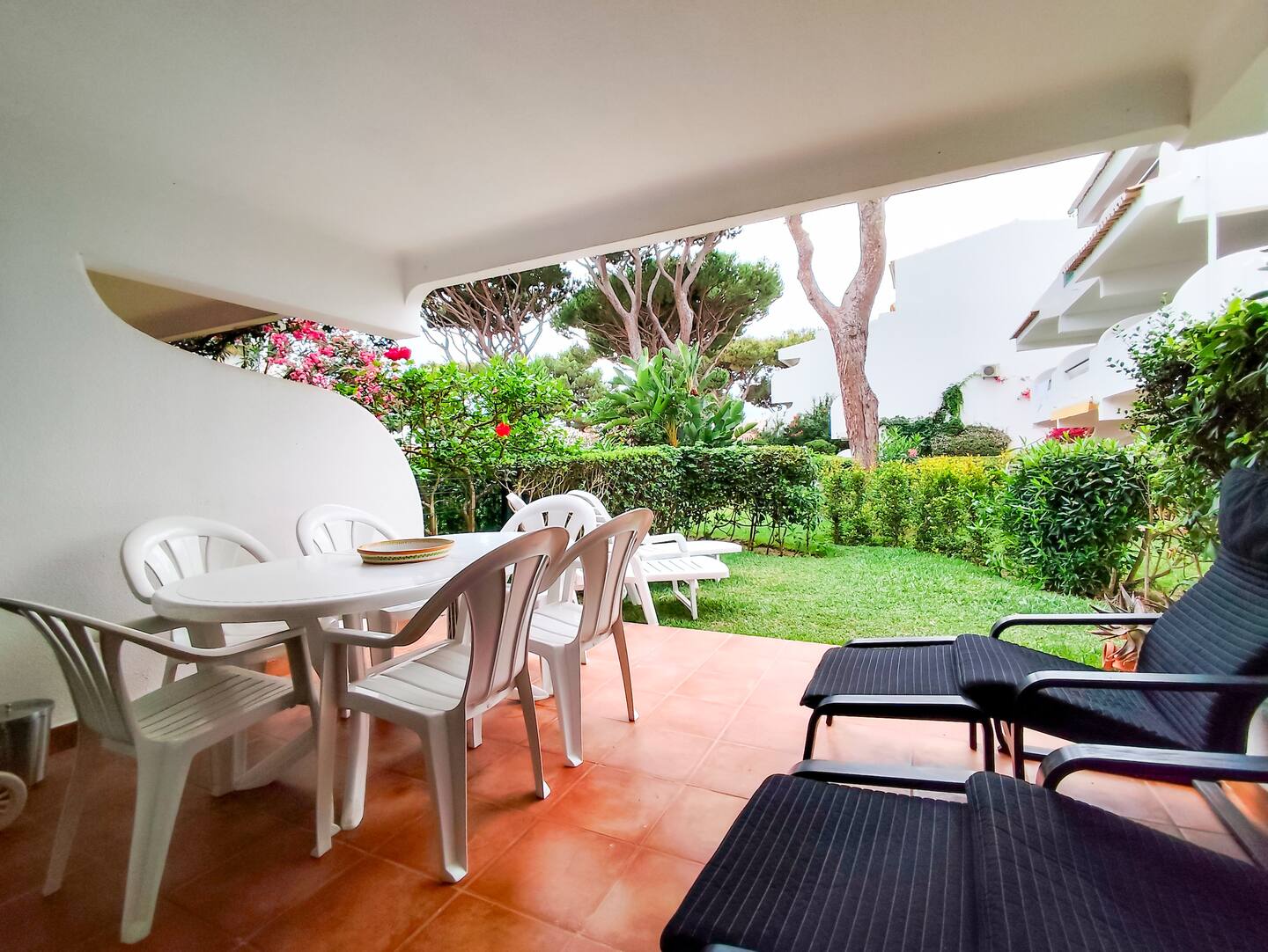 Rua do Pombo Correio - Solar dos Pinheiros, apartamento 105Apartment in the center of Vilamoura in a private condominium. It consists of 3 bedrooms, 2 full bathrooms, and a living room with an open-plan kitchen. Located on the ground floor with direct street access, it features a spacious terrace at the back with a small private garden and direct access to the pool without passing through any common areas. The kitchen is fully equipped, and all bedrooms include the necessary linens for your stay. For stays longer than 6 nights, we provide a 2-hour cleaning service every other day.